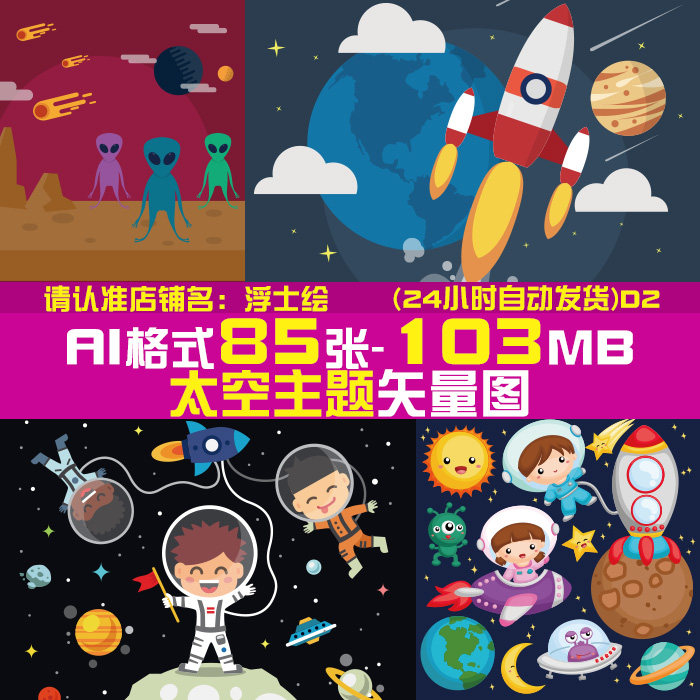 宇航员星球火飞船飞碟卫星外星人插画图标 AI格式矢量图片素材热门设计联盟服务商