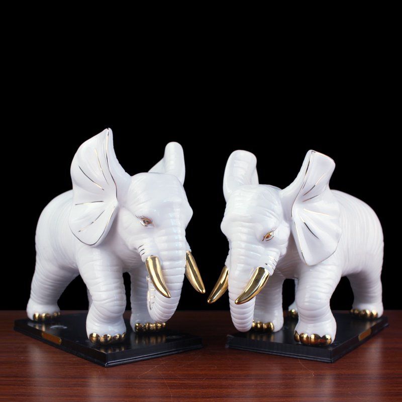 正品白色陶瓷大象摆件一对招财镇宅风水象吸水象工艺品客厅装饰品热门设计联盟服务商
