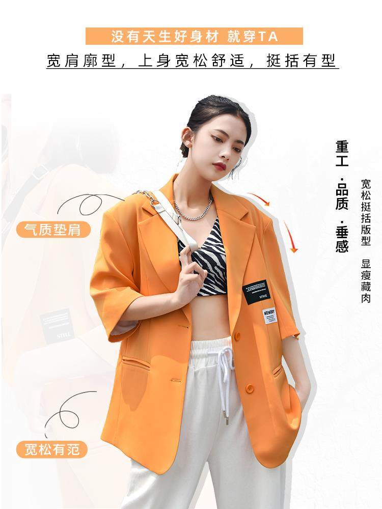 短袖西装外套女夏薄款2021新款网红廓形设计感炸街橘色小西服上衣热门设计联盟服务商