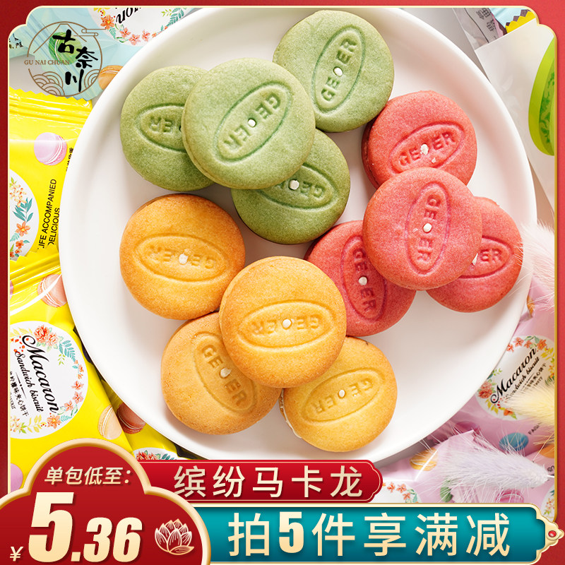 A古奈川马卡龙夹心饼干草莓奶油柠檬综合口味迷你脆零食品糕点心热门设计联盟服务商