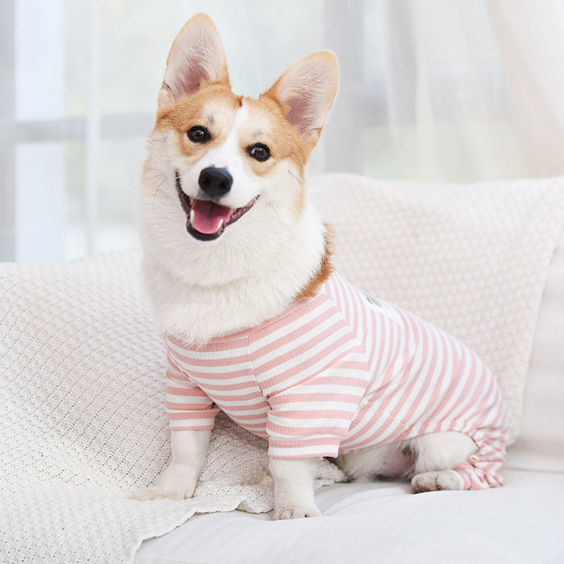 狗狗衣服泰迪比熊柯基博美小型犬夏季薄猫咪条纹网红睡衣四脚服饰热门设计联盟服务商