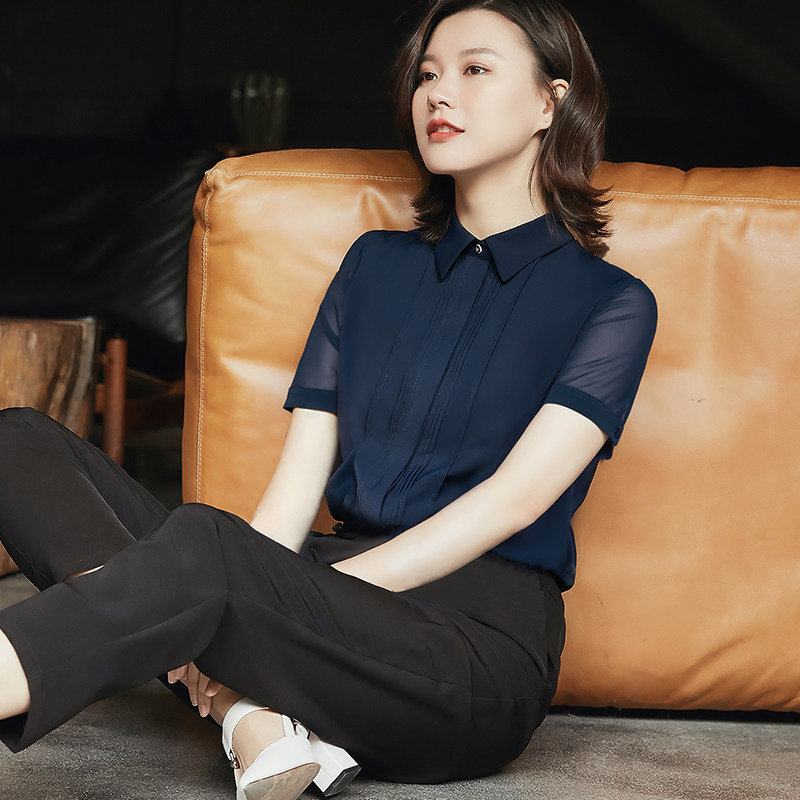雪纺衬衫女设计感小众2021夏季新款宽松洋气上衣职业大码短袖衬衣热门设计联盟服务商