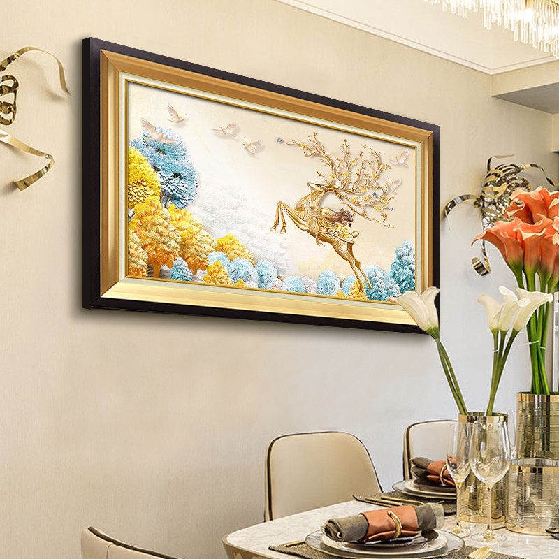 欧式单幅玄关横版装饰画美式餐厅装饰画 饭厅壁画客厅横幅挂画鹿热门设计联盟服务商