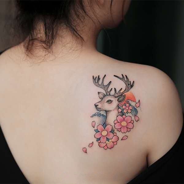 纹身贴防水男女持久彩色樱花与鹿后背 网红潮人满9元包邮热门设计联盟服务商