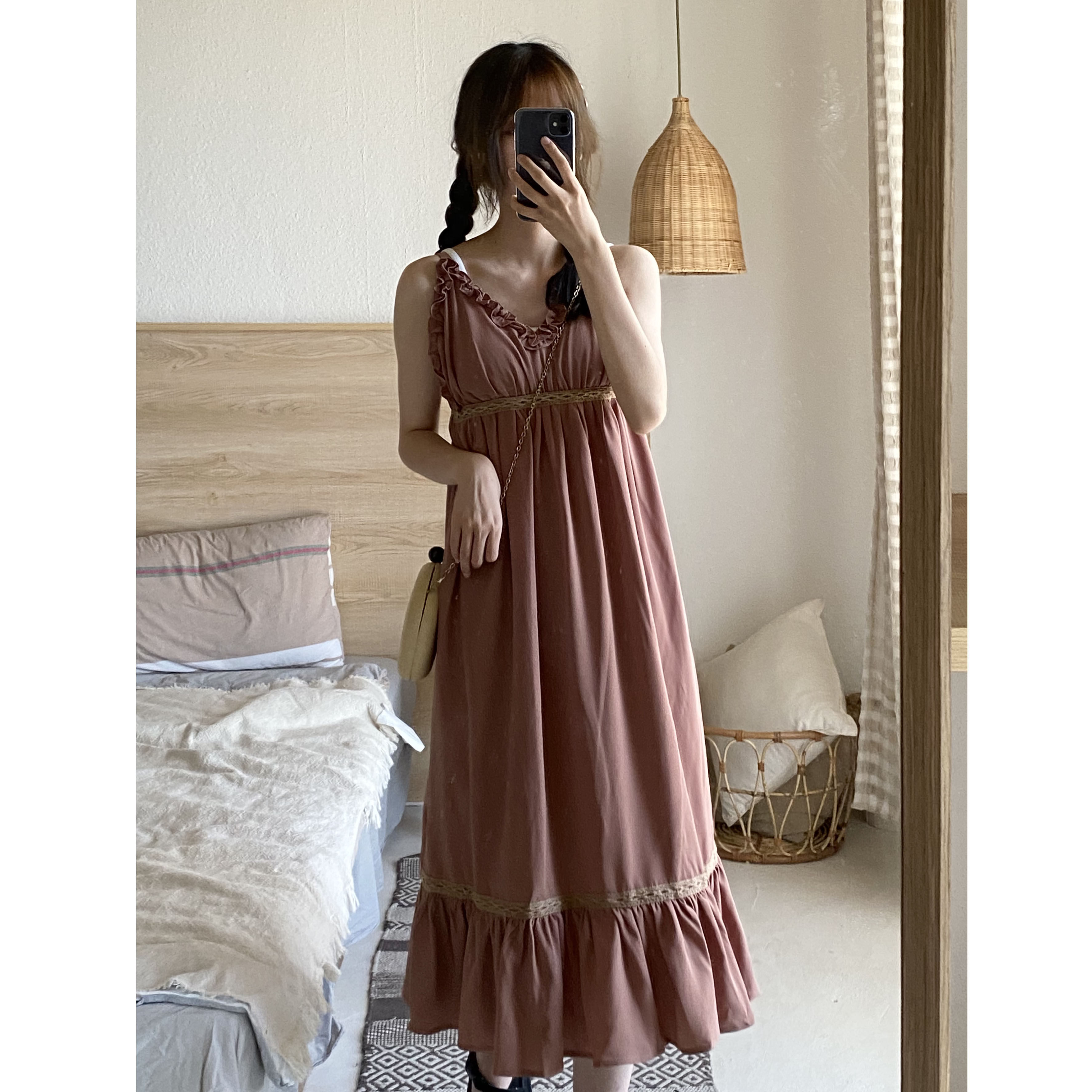 贰拾捌 网店款 脏橘色背心吊带连衣裙 复古韩版百搭中长裙夏季女热门设计联盟服务商