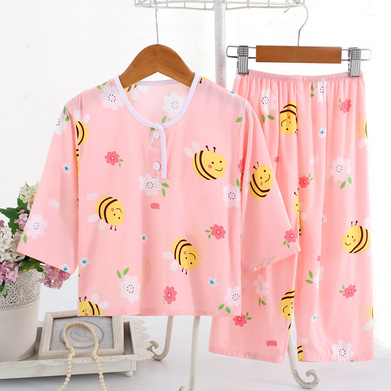 夏季儿童绵绸睡衣男童女童小女孩宝宝棉绸长袖卡通家居服套装薄款热门设计联盟服务商