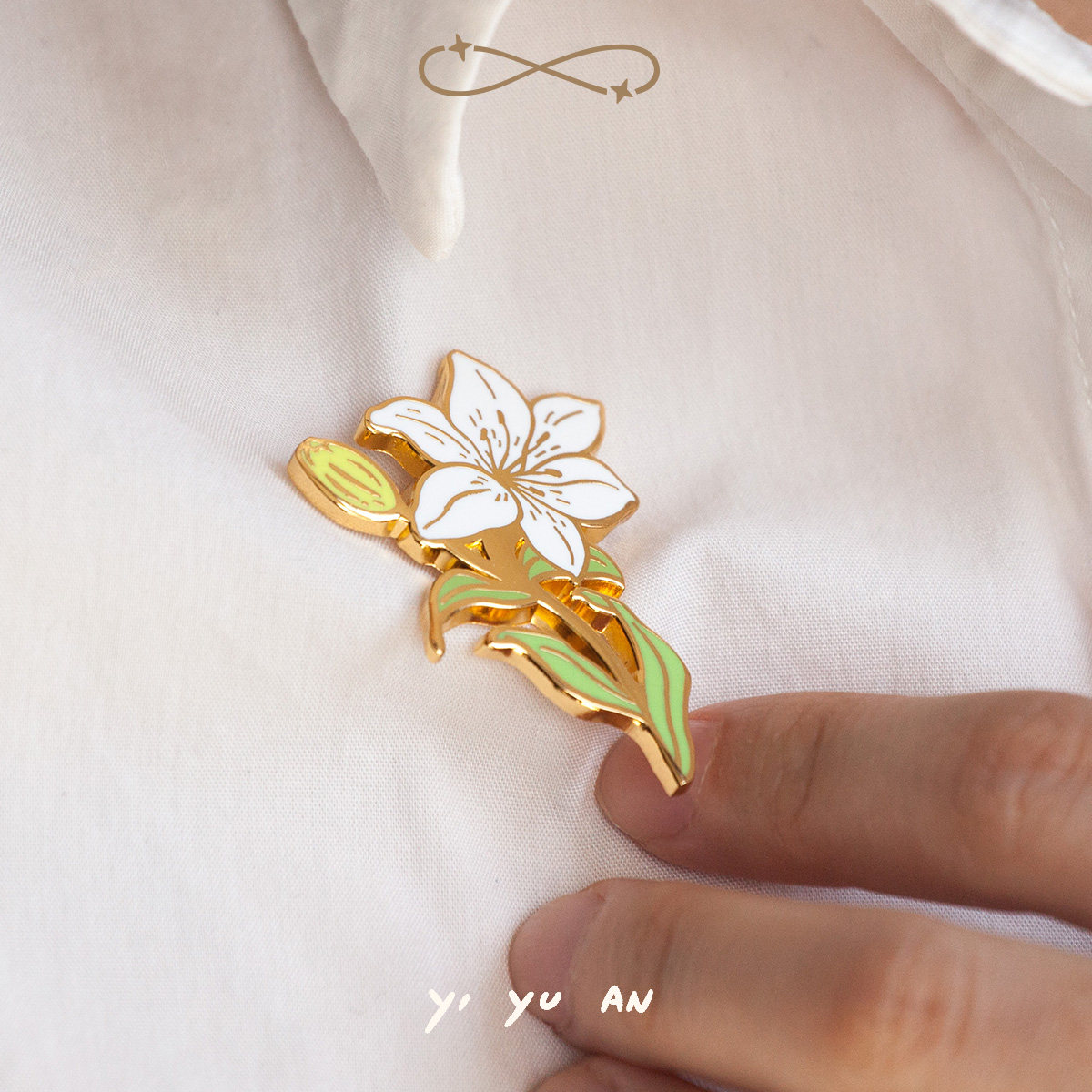 yiyuan百合花设计师文艺镀金珐琅ins胸针高档女礼盒圣诞礼物徽章热门设计联盟服务商