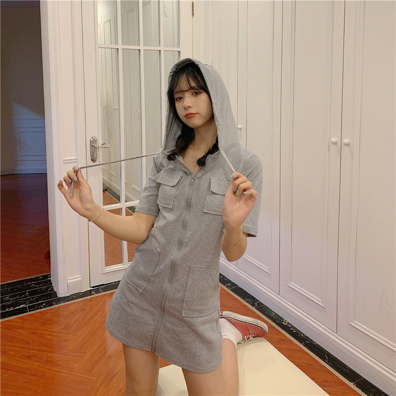 实拍实可盐可甜法式设计感小众运动风连帽温柔风连衣裙子女热门设计联盟服务商