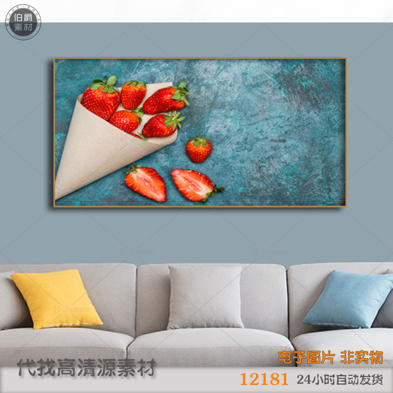 现代轻奢大气横幅水果草莓黑白装饰画创意简约沙发背景墙挂画素材热门设计联盟服务商